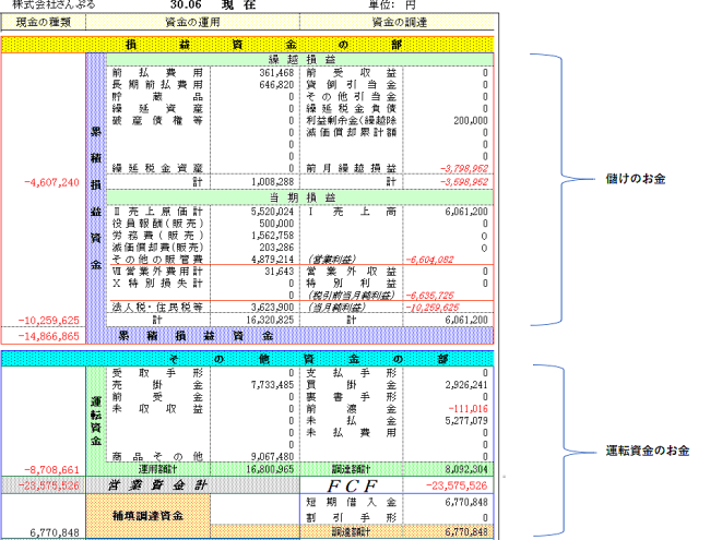 | 2.「運転資金のお金」 | -20,000,000 | 10,000,000 | -10,000,000 |