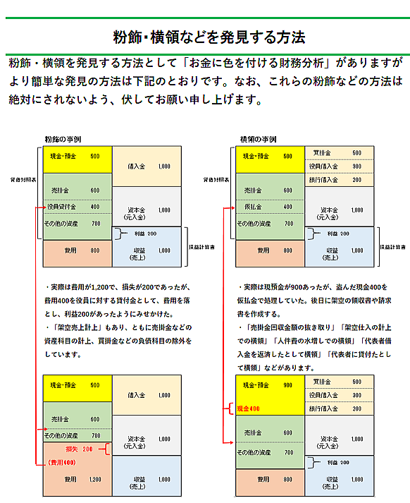 粉飾などを発見する方法